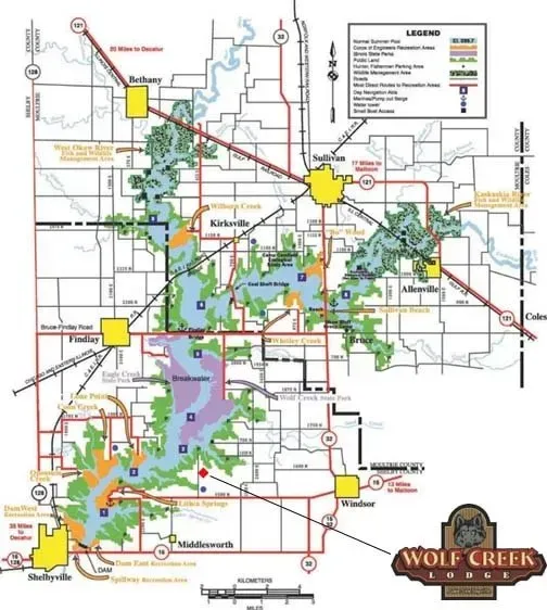 - Turn left (North) 1 1/2 mile to Wolf Creek Lodge.